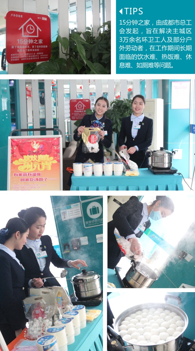 2月10日,为感恩环卫工人们的辛勤付出,作为武侯区“15分钟之家”的新桥口腔携手武侯区总工会,为奋斗在一线的“城市美容师”们送上了热腾腾的汤圆和诚挚的节日祝福。