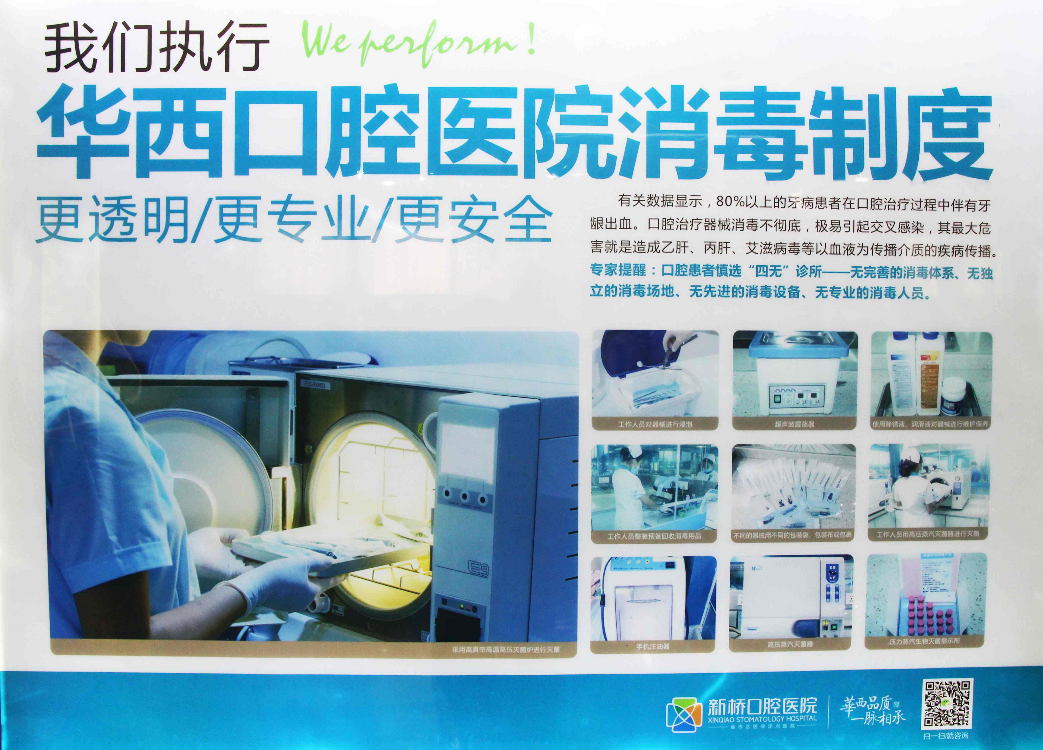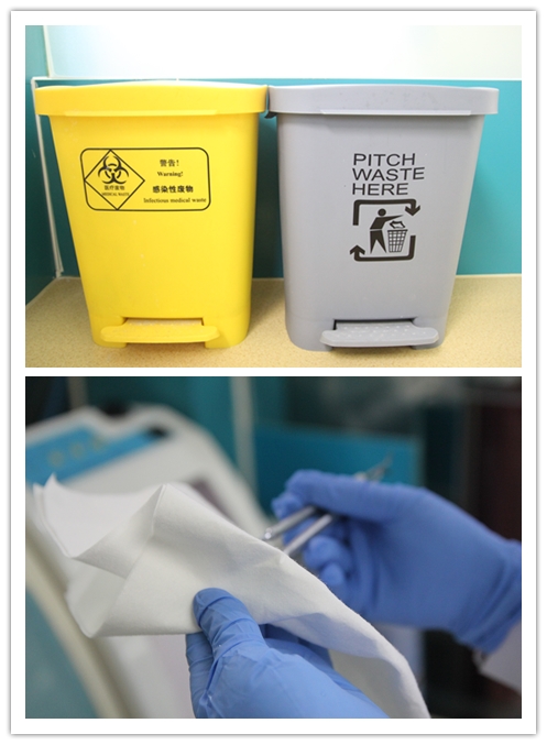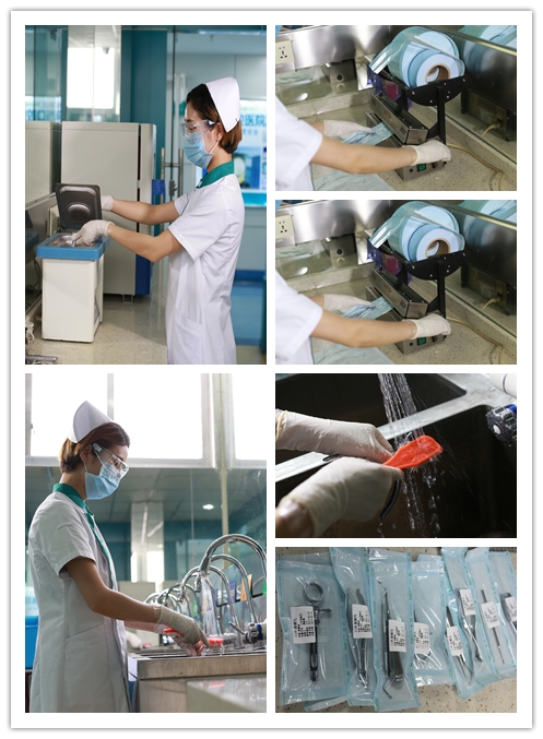“严格消毒安全治疗”这八个字是新桥口腔所有医务人员在医务工作中坚守的底线,对于进入口腔内的诊疗器械,如高速手机、洁牙工具等,必须严格执行“一人一用一消毒灭菌”,即所有诊疗器械,按照“回收-清洗-打包-灭菌”的流程进行专项管理。
