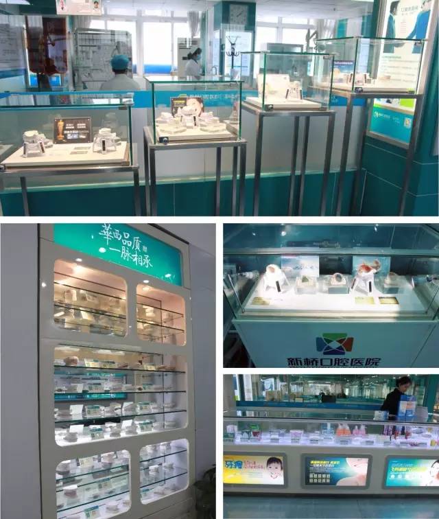 新桥与全球顶级材料生产商达成战略合作关系,每一种材料的引进和使用,均经过严格系统的考查,保证材料的品质。在新桥口腔公共区域,每一位顾客均能现场查看展示柜中的口腔卫生用品、精美牙模和各类医疗原材料,在治疗前直观感受使用材料的形态和质量。