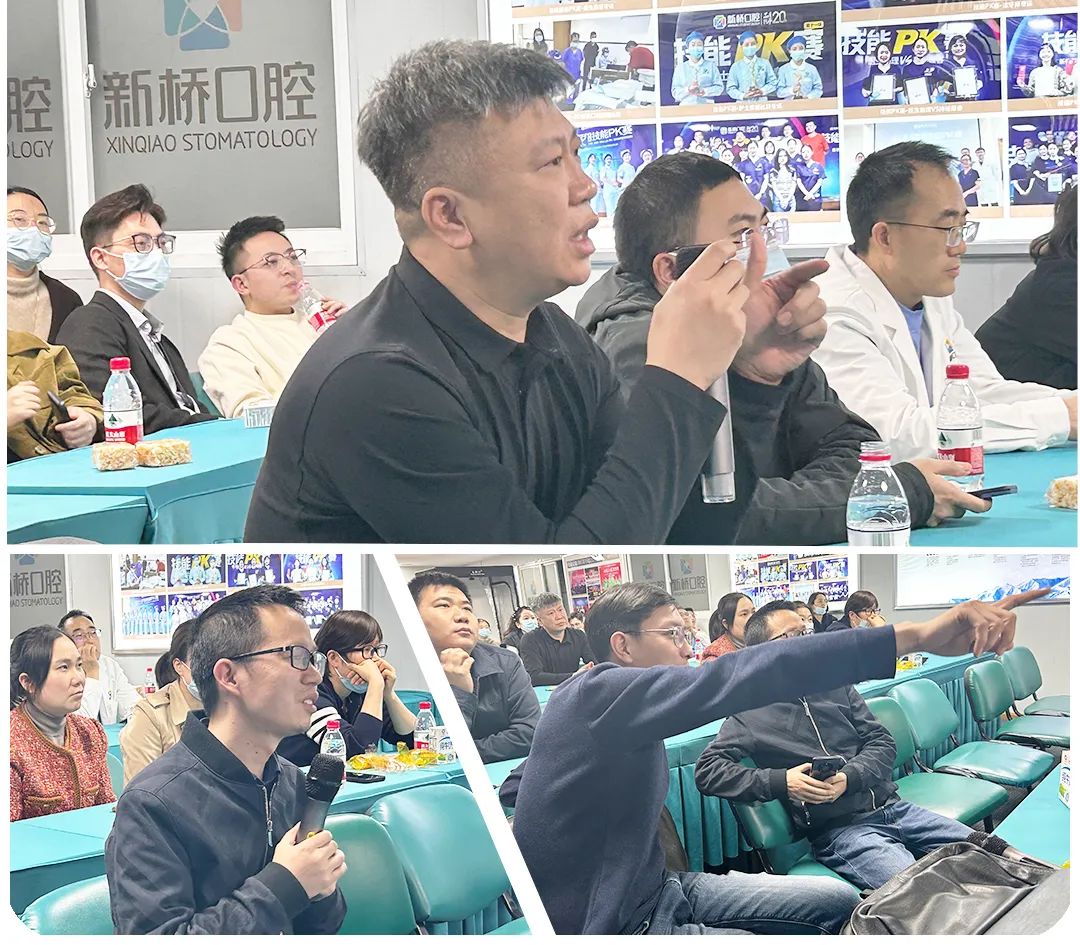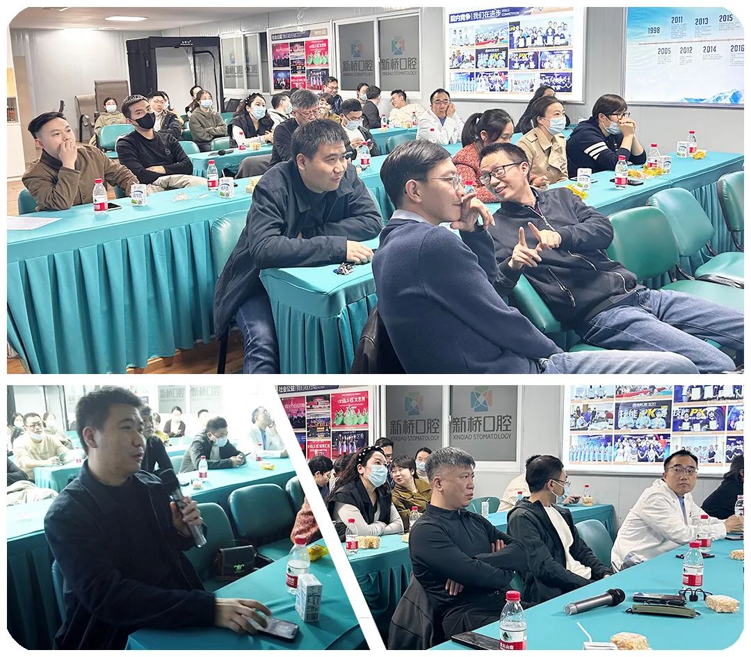 随后,新桥口腔高新院区门诊主任张洁,新桥口腔主任医师、高新院区种植专科主任张凯率先分享了各自经验,在场医生们也各抒己见,探讨了使用短植体、倾斜植入、骨膨胀术、GBR等多种骨量不足种植的解决方案。