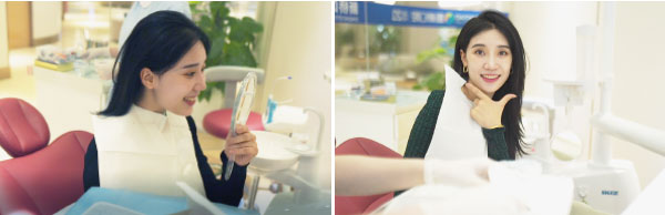 在美学修复完成第一时间,舒思瑶迫不及待拿起镜子观察效果,看到牙齿从形态和色泽都变得近乎完美,她的喜悦之情溢于言表:“感觉从心底里自信了,会比以前更爱笑了。看,这样笑起来也更自然!”