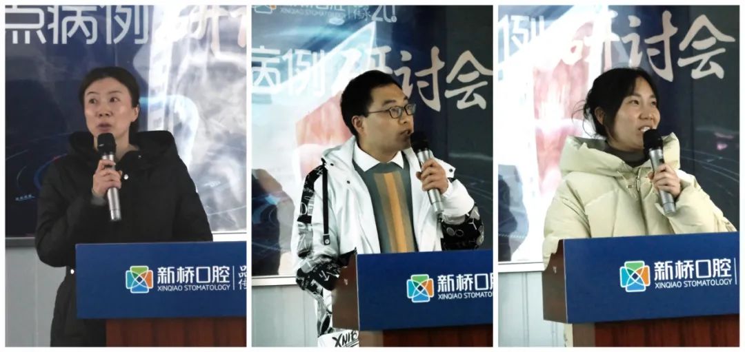 随后,光华院区门诊主任李晓玲现场展示了自己近期完成的一例无牙颌即刻种植案例,并分享了在整个治疗过程中的心得体会。光华院区种植医生谢海洋(种植医生王学锋代出席)带来了两例采用香肠技术进行骨增量种植的临床案例,种植医生丁春兰则就一例正畸种植联合治疗案例进行了全面分享和最终效果展示。