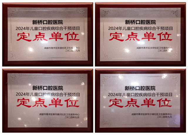 新桥口腔在顺利完成2011年成都市武侯区儿童口腔疾病综合干预项目、2023年成都市青羊区儿童口腔疾病综合干预项目的落地实施工作之后,于2024年9月再度被授牌为“2024年度成都市(青羊区)儿童口腔疾病综合干预项目定点单位”,负责配合项目的落地实施,深入校园开展口腔健康宣教、口腔健康检查、窝沟封闭防龋治疗等工作。