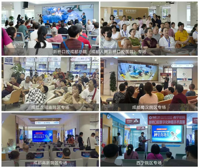 已接受 次咨询8月,新桥口腔圆满举办了6场数字化种植手术直播,共吸引了数百名缺牙顾客到场观摩。本月“种牙真功夫”覆盖新桥口腔成都总院、成都衣冠庙、蜀汉、高新院区以及西宁院区,通过多维度专业解析、直播流程透明化、智能化尖端设备应用等,系统解答了市民对数字化种植的疑虑与担忧,更全方位展现了医院在数字化种植领域的专业积淀与技术高度。