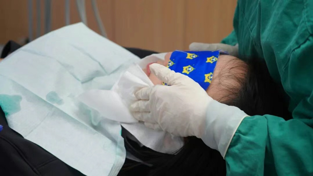 不少顾客在口腔诊疗操作中都会因长时间张口、肌肉紧张而感到疲惫,甚至出现颌关节酸胀不适。为了缓解顾客的紧绷感,提升舒适度体验,在PMTC操作中,医护们特地为大家提供了热敷眼罩,并配合颌关节区域进行针对性热敷与轻柔按摩,促进局部血液循环,帮助放松面部肌肉。