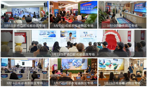 三月,新桥口腔圆满开展7场“种牙真功夫”种植手术直播活动,涵盖成都总院、衣冠庙、蜀汉、高新以及自贡院区。全程公开透明呈现“数字化+舒适化”诊疗流程,以雄厚的医资力量彰显出新桥口腔的专业底蕴。不仅让缺牙顾客亲历安全高效的品质服务,更助力区域口腔健康理念普及、深化“好口福 更幸福”的美好愿景,让优质口腔服务惠及更多市民。